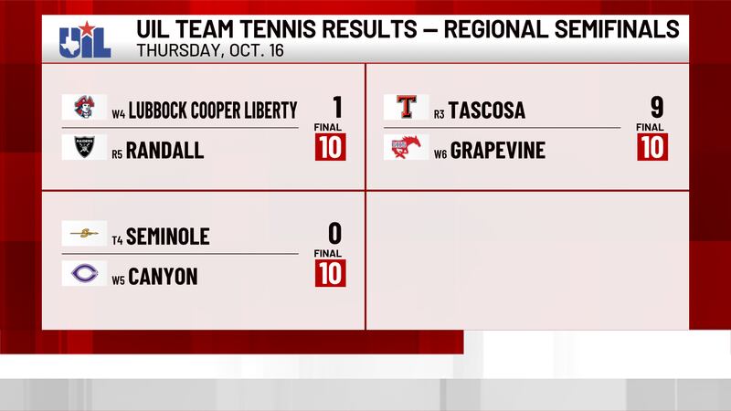 AMARILLO, Texas (KFDA) - Three area tennis teams advanced to the regional semifinals on Thursday, hoping to stay on the road to the championship and take home more gold balls.