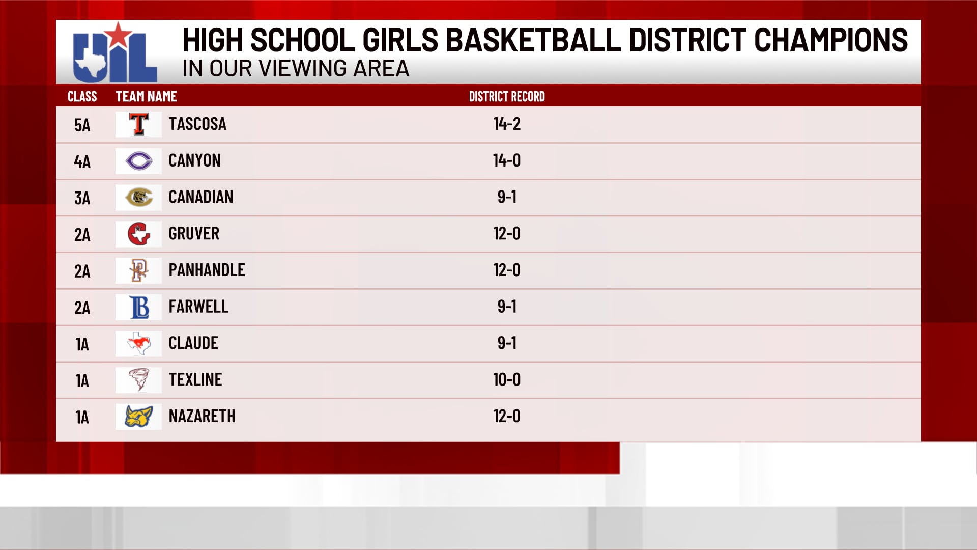 Nine of those squads have earned the elite status of district champion in their respective classifications, highlighting the strength of local girls basketball programs.